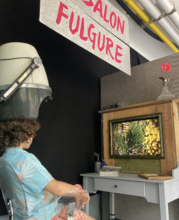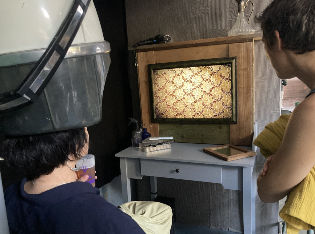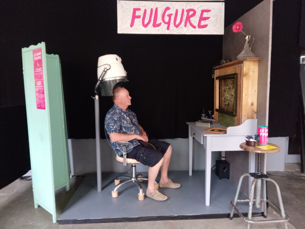 Arnaud et Delphine se sont intéressés à l’objet salon de coiffure… À partir de ce lieu d’échanges, de transformation et de plaisir, il et elle ont créé un petit théâtre autonome, immersif et vivant.